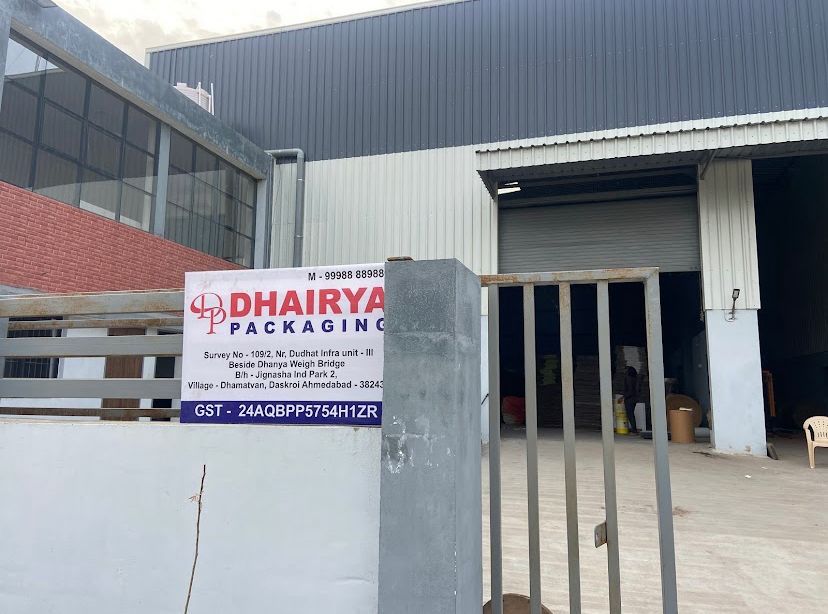 - Dhairya Packaging Survey No - 109/2 Nr, Dudhat Infra unit - III Beside Dhanya Weigh Bridge B/h - Jignasha Ind Park 2 Village - Dhamatvan, Daskroi Ahmedabad - 382433